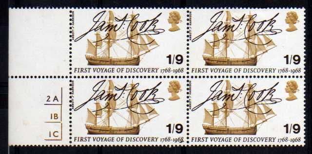 H473) 1968 U/M + M/M BLK OF 4 X 1/9d 'JAMES COOK'